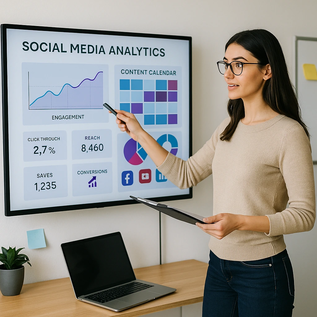 Finally, they track and refine. Social changes fast in 2025, so consultants watch what’s working, test new ideas, and adjust your approach based on data like engagement rate, CTR, leads, and conversions — the metrics most teams rely on now to prove ROI.